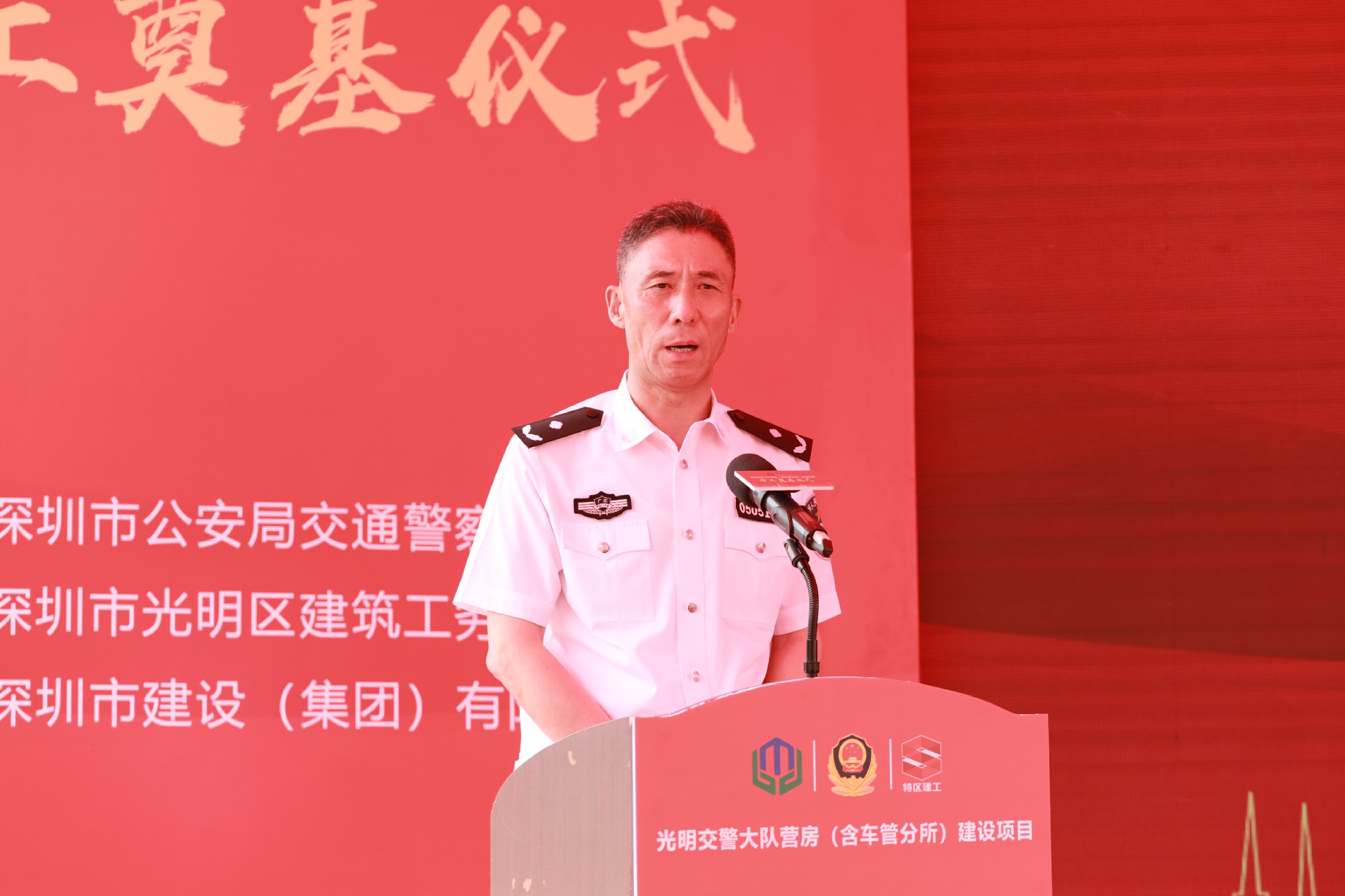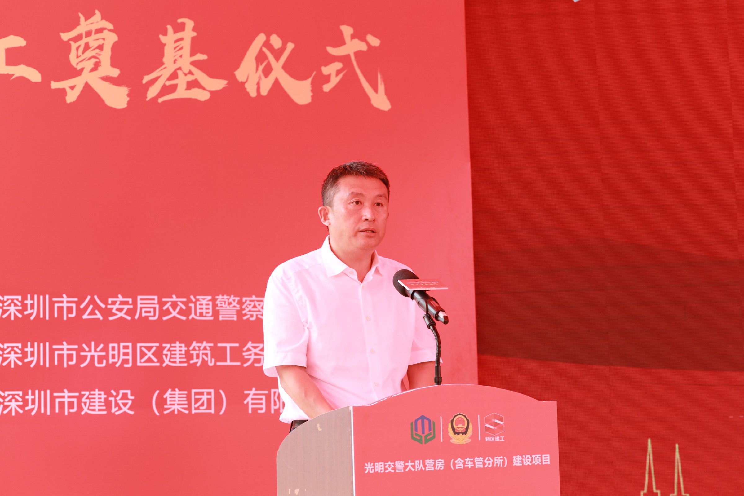 儀式主持人市交警局綜合處檀杰長處長安排光明區(qū)交警大隊大隊長蔡昌勝介紹項目涉及各項工作推進(jìn)情況;光明區(qū)副區(qū)長、區(qū)公安分局局長周金堂,光明區(qū)建筑工務(wù)署署長黎智,建設(shè)集團(tuán)董事長黃海等領(lǐng)導(dǎo)分別致辭。各級領(lǐng)導(dǎo)對項目開工前期推進(jìn)工作表示了肯定與贊揚(yáng),對項目及時高效竣工表達(dá)了殷切期望并提出了具體工作要求。