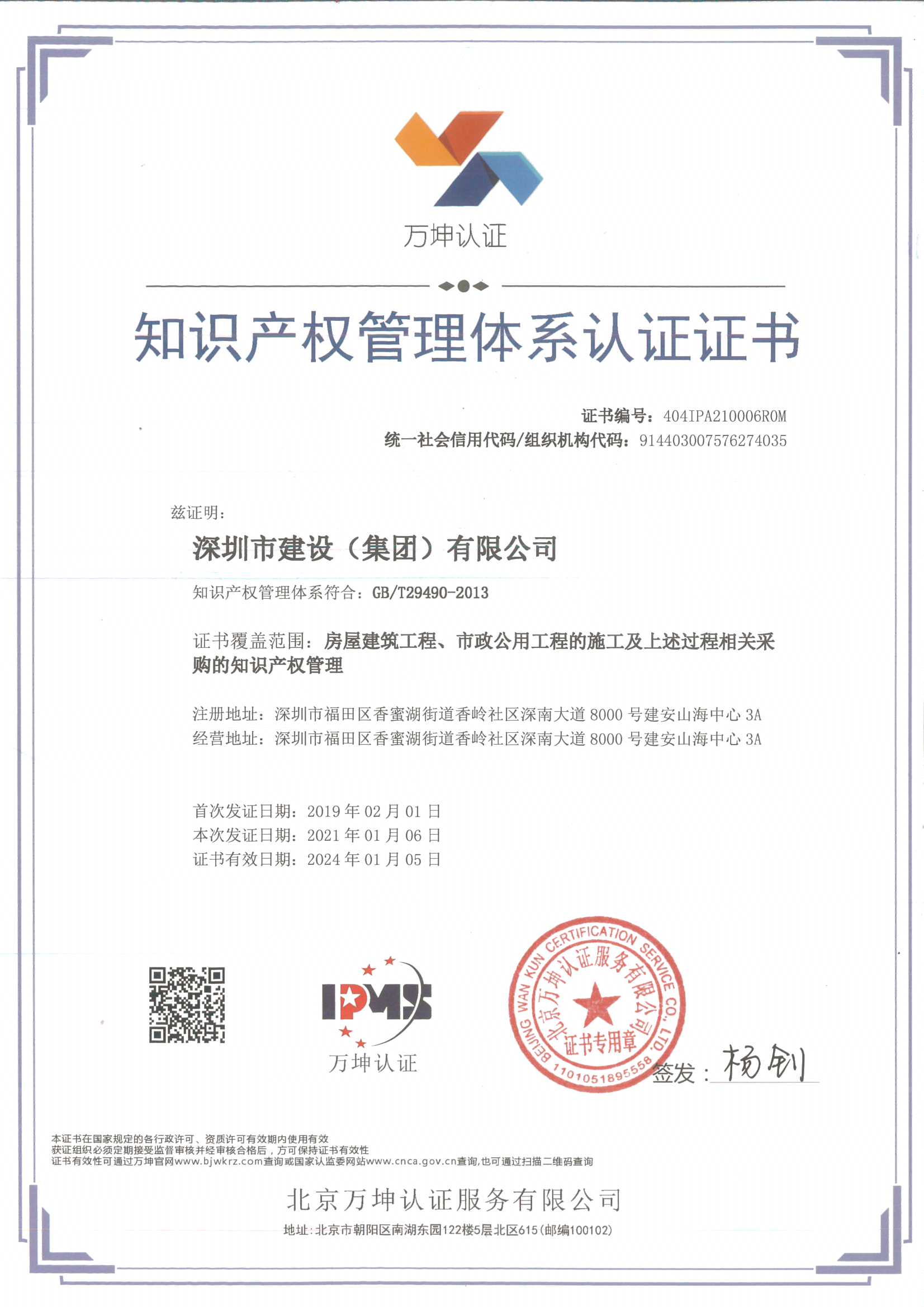 知識產(chǎn)權(quán)管理體系認(rèn)證證書(中文版)